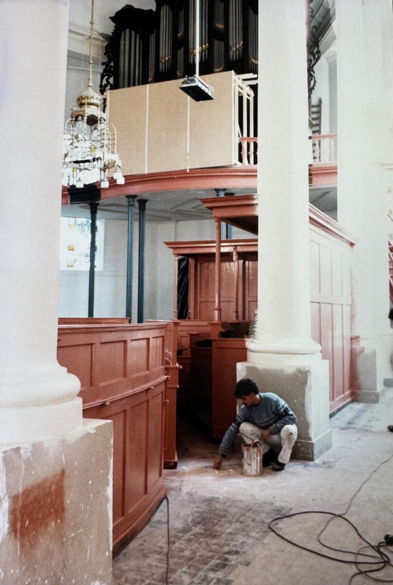 Schilderen van de binnenzijde van de reddingsboot bij Niestern/Sander te Farmsum