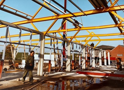 Schilderen Spanten school in aanbouw aan de Visserijweg te Farmsum